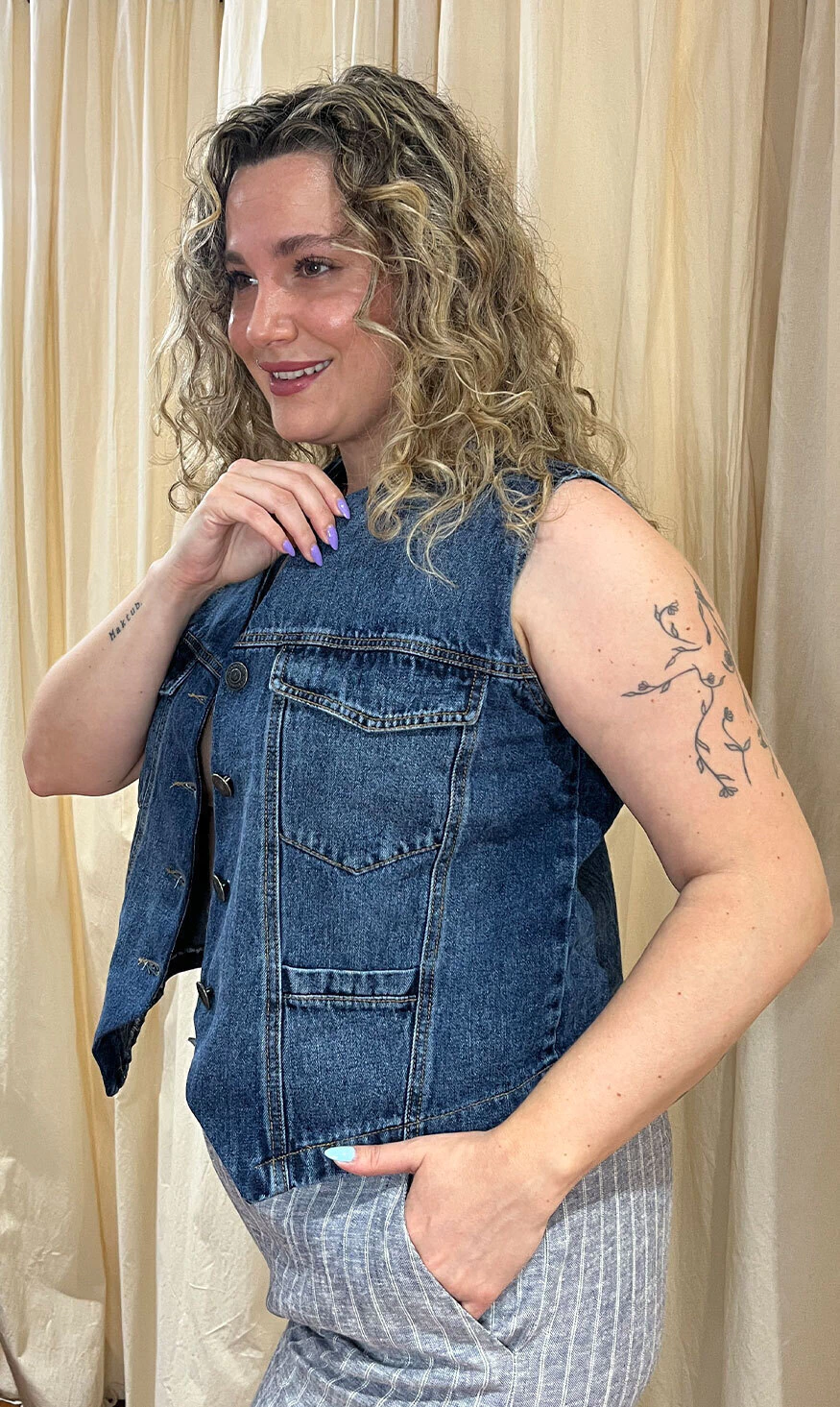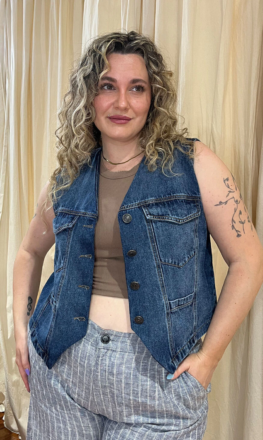 Este chaleco relaxed cuenta con un diseño y corte relajado lo convierte en la prenda perfecta para combinar con diferentes outfits, desde un look casual hasta uno más nocturno, como un top.