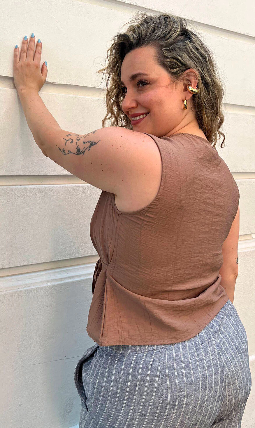 Top cruzado sin mangas. Super adaptable, podes regular el cruce de las solapas. La calidad del tejido es increible, fresco y liviano.