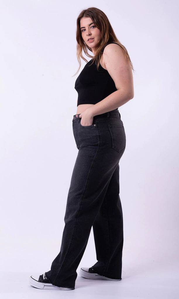 Jean Wide Leg. Corte de piernas rectas, cintura alta y ruedo desflecado. El ancho de piernas perfecto para la que busca un jean que no sea super ancho. Muy armonioso en su forma.